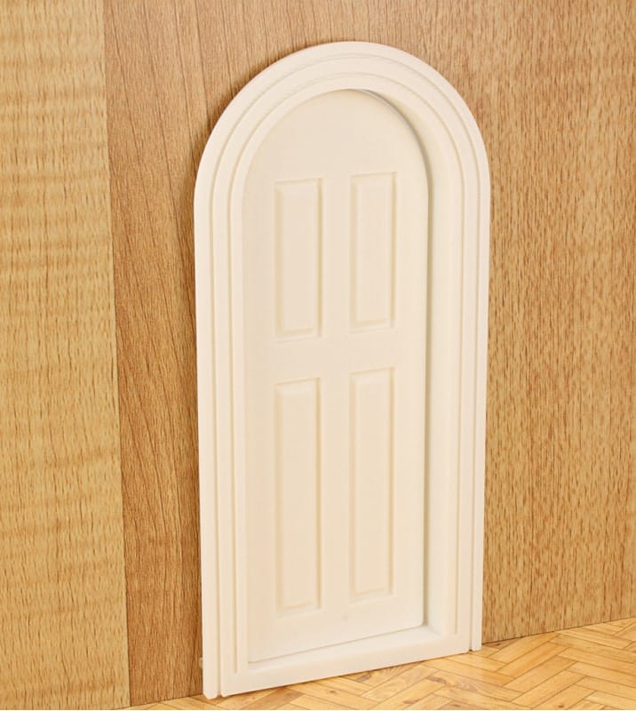 Porta bianca in plastica con la parte superiore arrotondata, progettata appositamente per le case delle bambole Dh035, Dh041 e Dh042. Dimensioni dell'apertura necessaria: 6,7 x 13,9 cm.